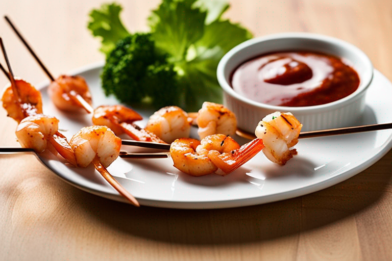 These grilled shrimp skewers are coated in a spicy cocktail sauce made with slightly expired commercially bottled seafood cocktail sauce. The sauce adds a tangy and flavorful kick to the succulent shrimp.
